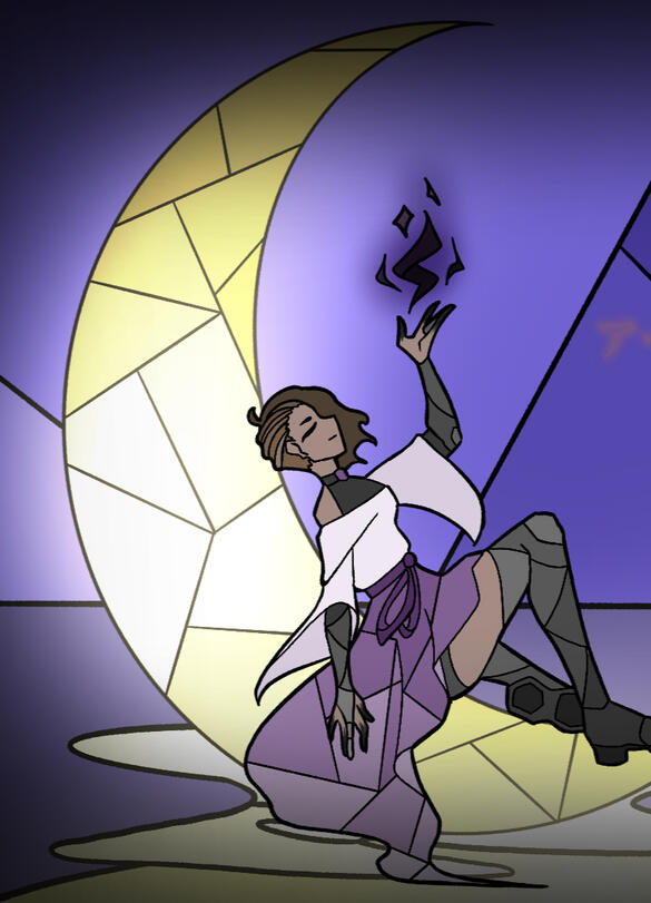 -----Age: 21Birthday: Dec 28Height: 5'5 (165 cm)Gender: Female (she/they)Race: Emaldorph (POC)Occupation: Estalis (Avatar)Languages: English (very small) SpanishColor: #6f627c